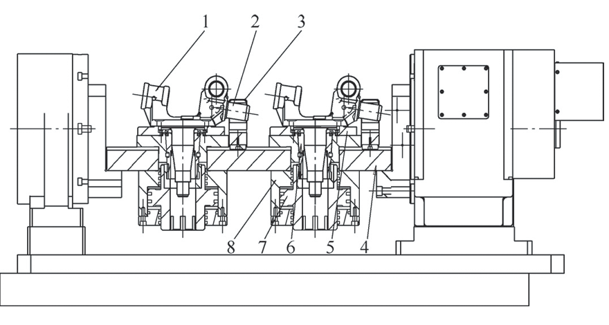 1. 工件 2.插拔式定位心轴 3.U形定位卡槽 4.桥板 5.定位盘 6.锁紧弹套 7.液压拉缸活塞 8.液压拉缸缸体