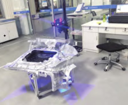(1)蓝光扫描 分别对毛坯校型、机加(面、孔)及成品校型后进行扫描测量,并针对扫描的结果进行反馈,以便提前识别问题点提前规避尺寸缺陷。
