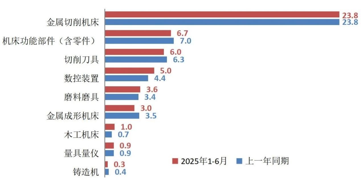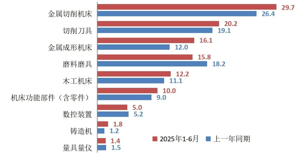表1 2025年上半年机床工具行业及主要分行业的营业收入情况