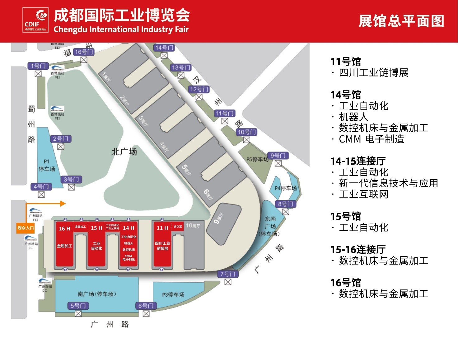 11号馆 四川工业链博展 | 14 号馆 工业自动化/机器人/数控机床与金属加工/CMM 电子制造 |