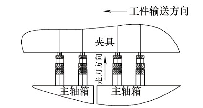 从加工过程来分析, 加工中心机床加工凸轮轴孔,是单轴加工,刀具从第1档凸轮轴孔前端口开始,结束在凸轮轴孔末端出口,刀具工进全程410mm以上,而且是以工进速度进给。刀具退出排气凸轮轴孔,再加工进气凸轮轴孔,加工过程也是如此复杂,本工序节拍比较长,效率低,限制了整条缸盖生产线生产节拍的提高。