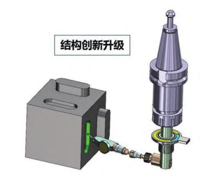 加工部位采用微调精镗单元和刀桥分体安装式结构,通过更换微调精镗单元,快速完成镗孔尺寸切换,同时在刀桥上阶梯式设置两段孔径部,每个孔径部分别安装有独立的微调精镗单元进行不同尺寸的里孔镗削加工,在最大限度的情况下,实现了多孔位同时精镗加工,提高多孔位里孔的镗削加工效率。