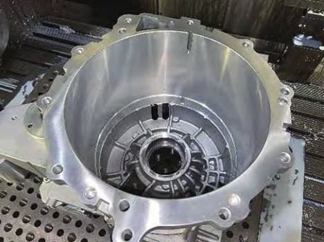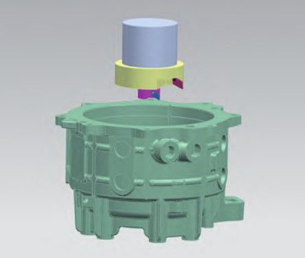 汽车在运行过程中,电动机中的转子高速运转,为保证电动机在运行时的性能和稳定性,对电动机壳体的定子装配孔和转子轴承孔的同轴度有极高的精度要求。电动机壳体传统的加工工艺,使用加长立铣刀螺旋下切的方式粗加工定子装配孔和轴承孔,由于立铣刀伸出过长,导致加工后壳体侧壁产生振纹。精加工时,分序使用两把不同直径的镗刀精加工侧壁和轴承孔,在换刀的过程中,很容易出现圆心的偏离,造成定子装配孔和转子轴承孔的同轴度偏差,影响产品质量。