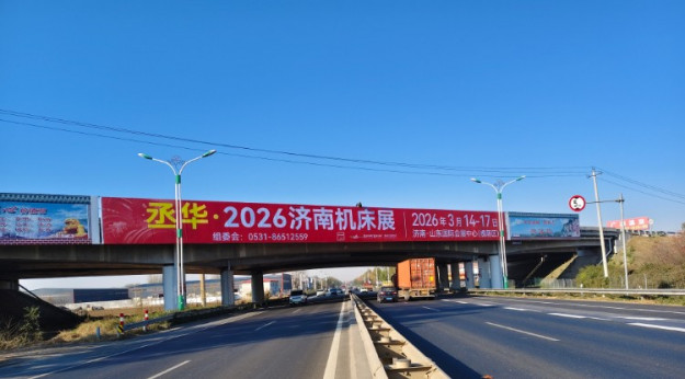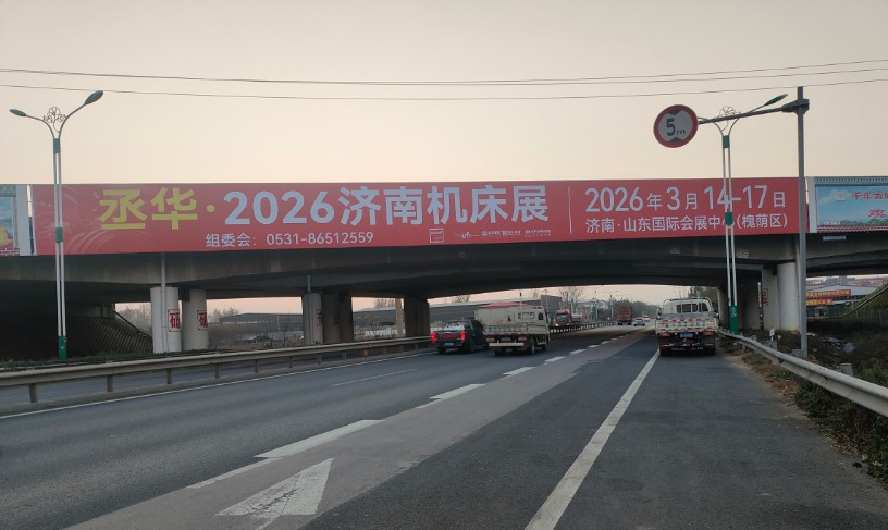 调研数据显示,潍坊地区专业观众占济南机床展全国观众总量的6%,且采购需求存在较大挖掘空间。基于此,展会在潍坊车流量日均3万余辆的核心路段布局跨桥广告,既借助高车流量实现展会大范围曝光,又精准锚定潍坊产业带流量枢纽,串联周边产业集群,让展会信息随车流传至产业链上下游,为展会吸纳更多精准采购商筑牢宣传根基。