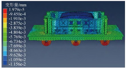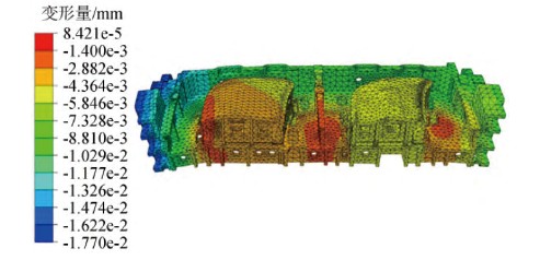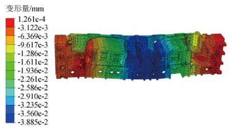 图9 顶盖模具支撑到测量平板小车上的变形结果